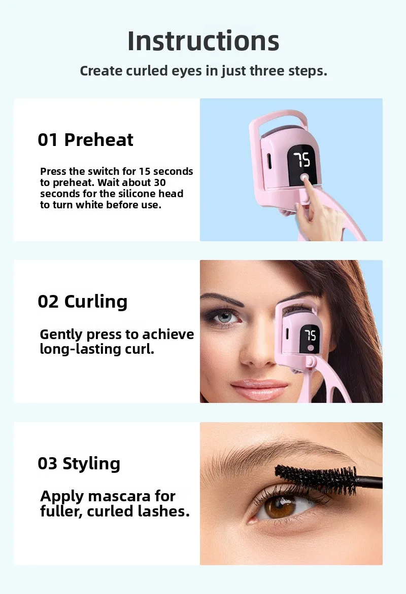Get long-lasting, natural curls in seconds with the Electric Safe Eyelash Curler! Designed with gentle heat technology, it lifts and curls lashes safely without pinching or pulling. The heated comb evenly distributes warmth to set your curl, giving your lashes a salon-like lift that lasts all day.