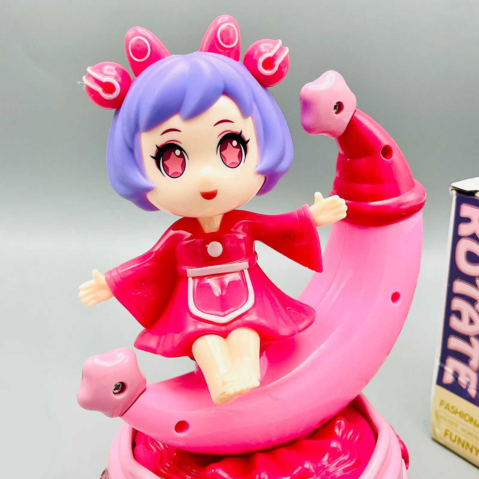 Enchant your child with the Rotate Moon Doll, a delightful rotating moon toy featuring dynamic music and glowing lights! This charming toy includes a cute doll figure seated on a crescent moon that rotates and lights up, adding a magical touch to any playtime. With interactive features like universal rotation and engaging music, this toy captivates young children and enhances their sensory development. Ideal for kids aged 3 and up, it makes a lovely gift that brings joy and wonder to any child’s collection. Features
